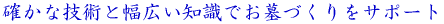 墓碑 ・ 灯籠 ・ 記念碑 ・ 石材工事一式 ・ 設計施工 ・ 移転 ・ リフォーム ・ クリーニング |